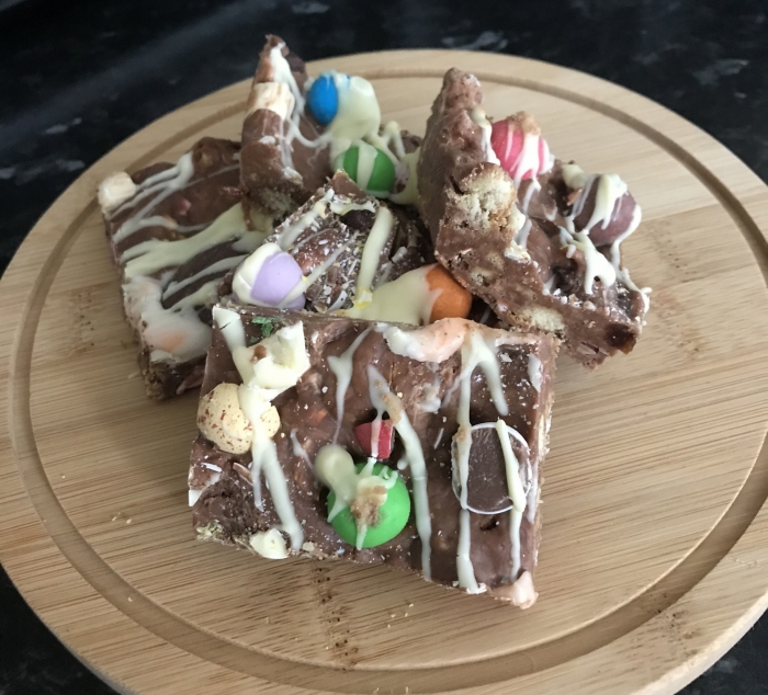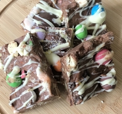 - Once the rocky road has set solid, remove it from the tin and cut it into portions.